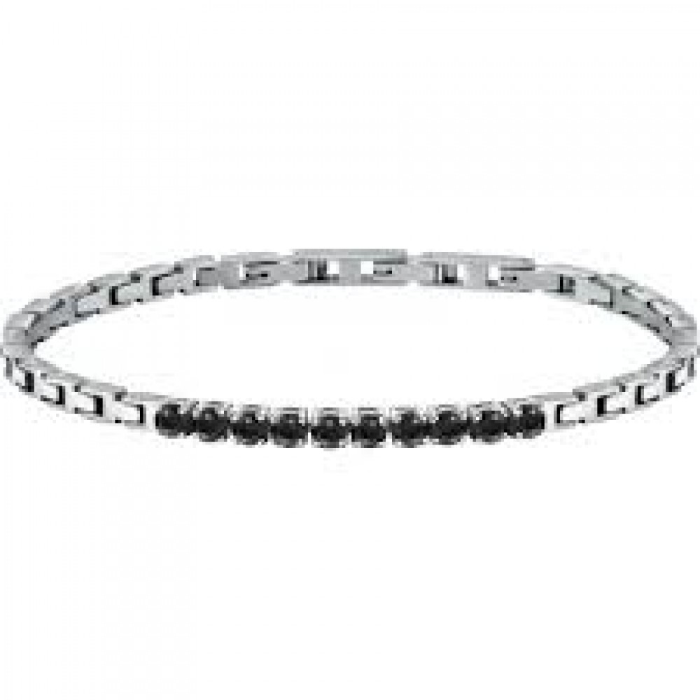 Bracciale Da Uomo Di Morellato Della Collezione Tennis. Gioiello Realizzato In Acciaio Con Zirconi Neri. Lunghezza: 22Cm.