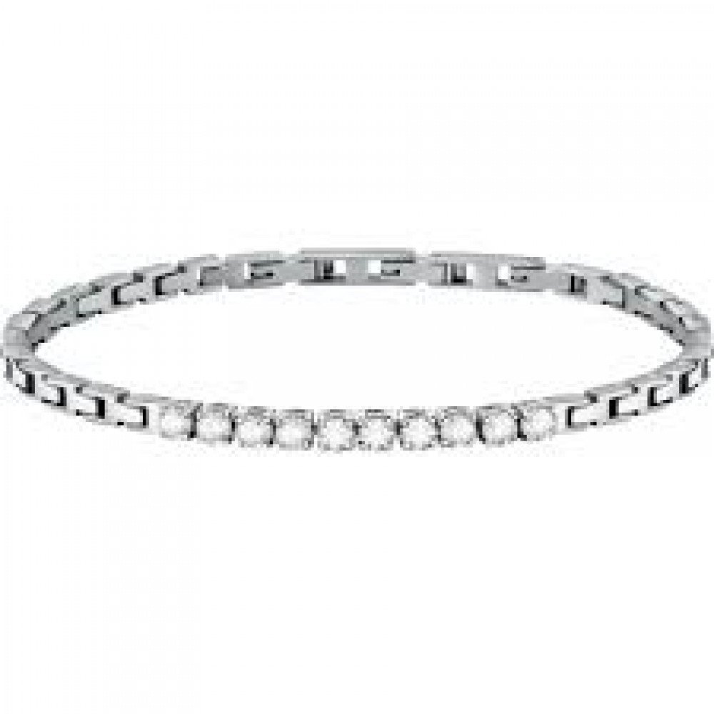 Bracciale Da Uomo Di Morellato Della Collezione Tennis. Gioiello Realizzato In Acciaio Con Zirconi Bianchi. Lunghezza: 22Cm.